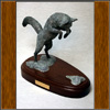 A slightly more contemporary patina, this grey fox has the same action and beauty of the original red fox piece. The "white lace" effect at the foundry is turned into a beautiful grey coat and a simulated snow mound where dinner awaits.